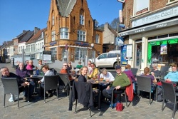 | + | Arrivés sous un brouillard qui s'est transformé en un magnifique soleil. Pique Nique en terrasse sur la place de Cassel ☀️☀️☀️ | ||